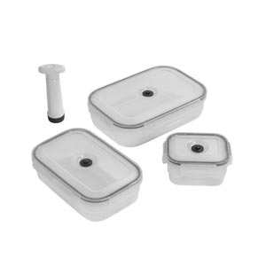 Compactor te propone toda una serie de contenedores de alimentos equipados de un sistema de cierre al vacío. Gracias a sus juntas de silicona, nuestros botes son completamente herméticos. Muy prácticos para guardar en la heladera, los contenedores pueden utilizarse en el lavaplatos, así como en el horno o en el microondas.