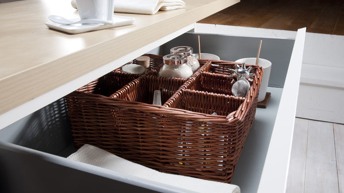 Los organizadores te permitirán encontrar ese utensilio, cubierto o pequeño accesorio que necesitas en tan sólo un segundo. Una encimera despejada con objetos fáciles de encontrar es la clave para hacer de tu cocina un espacio tan estético como agradable.