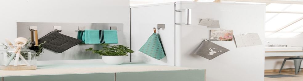 Práctico para colgar trapos y guantes en los laterales del frigorífico o sobre cualquier superficie metálica. Los ganchos "Magnet" son de acero inoxidable.