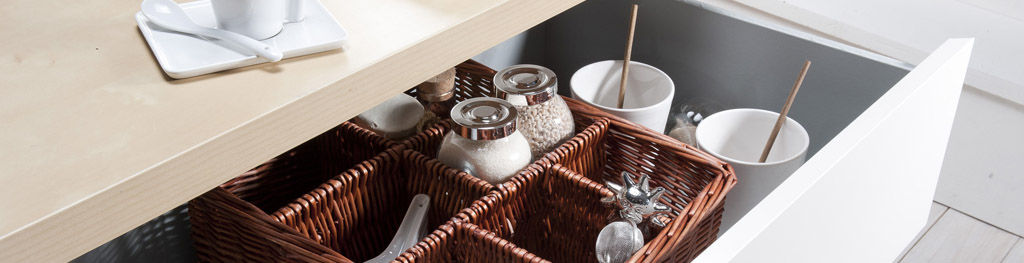 Organiza tus cajones de cocina con los separadores Compactor. En un abrir y cerrar de ojos optimizarás el espacio de tus cajones y organizarás tus utensilios para encontrarlos más fácilmente.